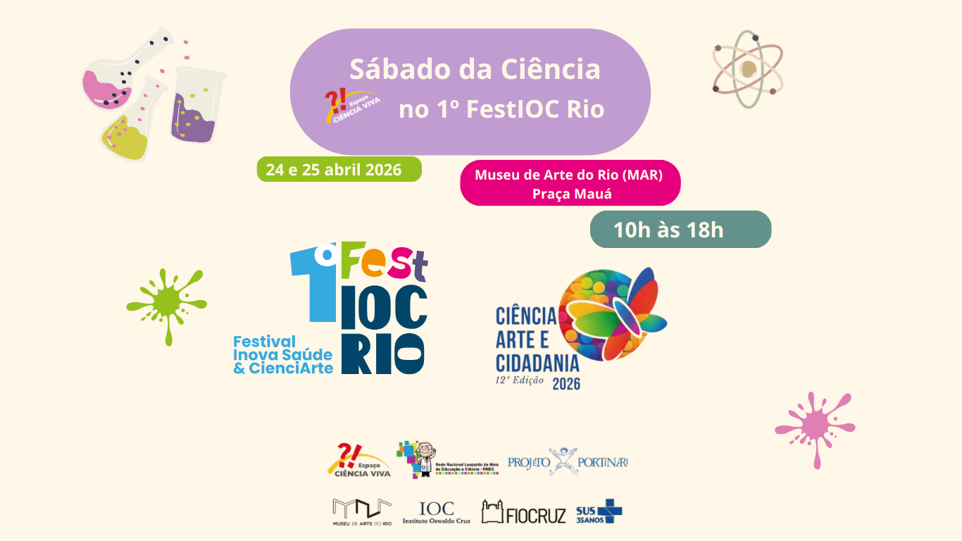 Isso porque o Espaço Ciência Viva – ECV foi convidado pelo IOC – Instituto Oswaldo Cruz, que acaba de completar 125 anos, para integrar as atividades do 1º FestIOC Rio – Festival Inova Saúde & CienciArte incluindo de forma híbrida a realização da 12ª Simpósio Ciência, Arte e Cidadania – CAC 2026, que vem sendo organizado desde 2002 pelo IOC-Fiocruz e seus parceiros.