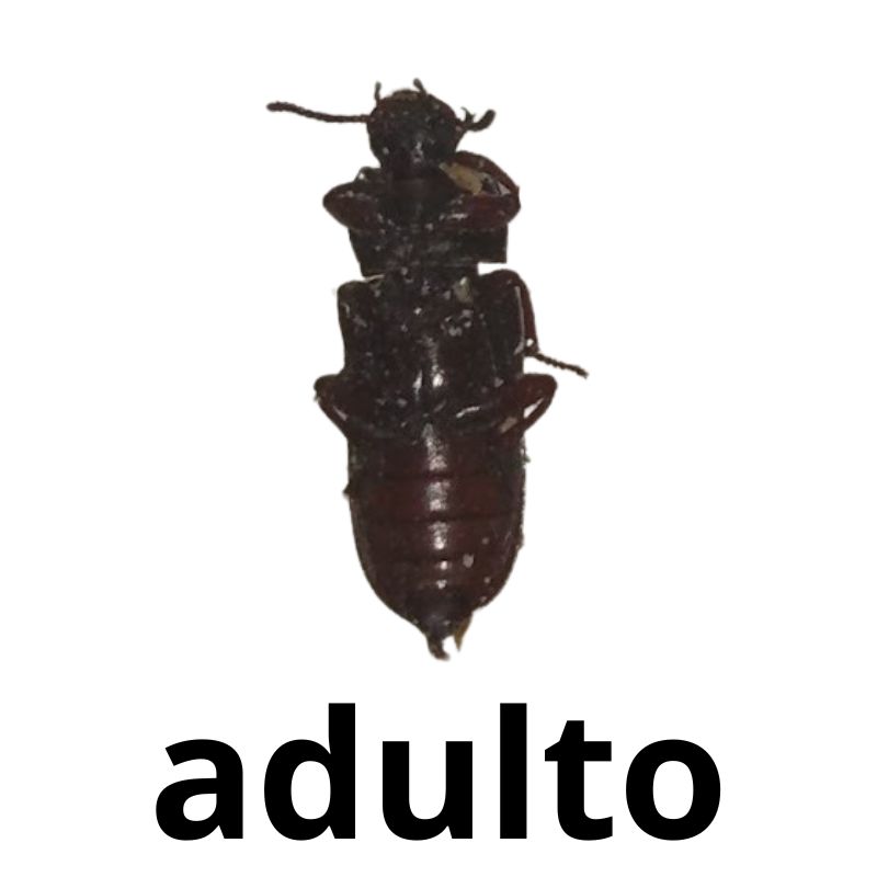 Adulto – Com exoesqueleto preto, asas (apesar de pouco usar) e capaz de se reproduzir, chegam a 2 cm de tamanho.
