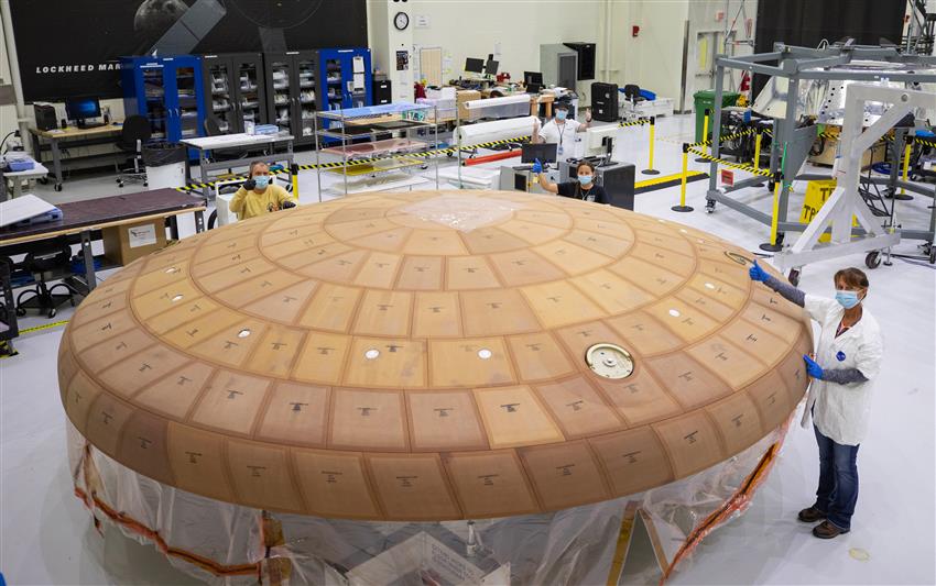 Tem um diãmetro de cerca de 5 metros — o maior escudo térmico ablativo já voado.