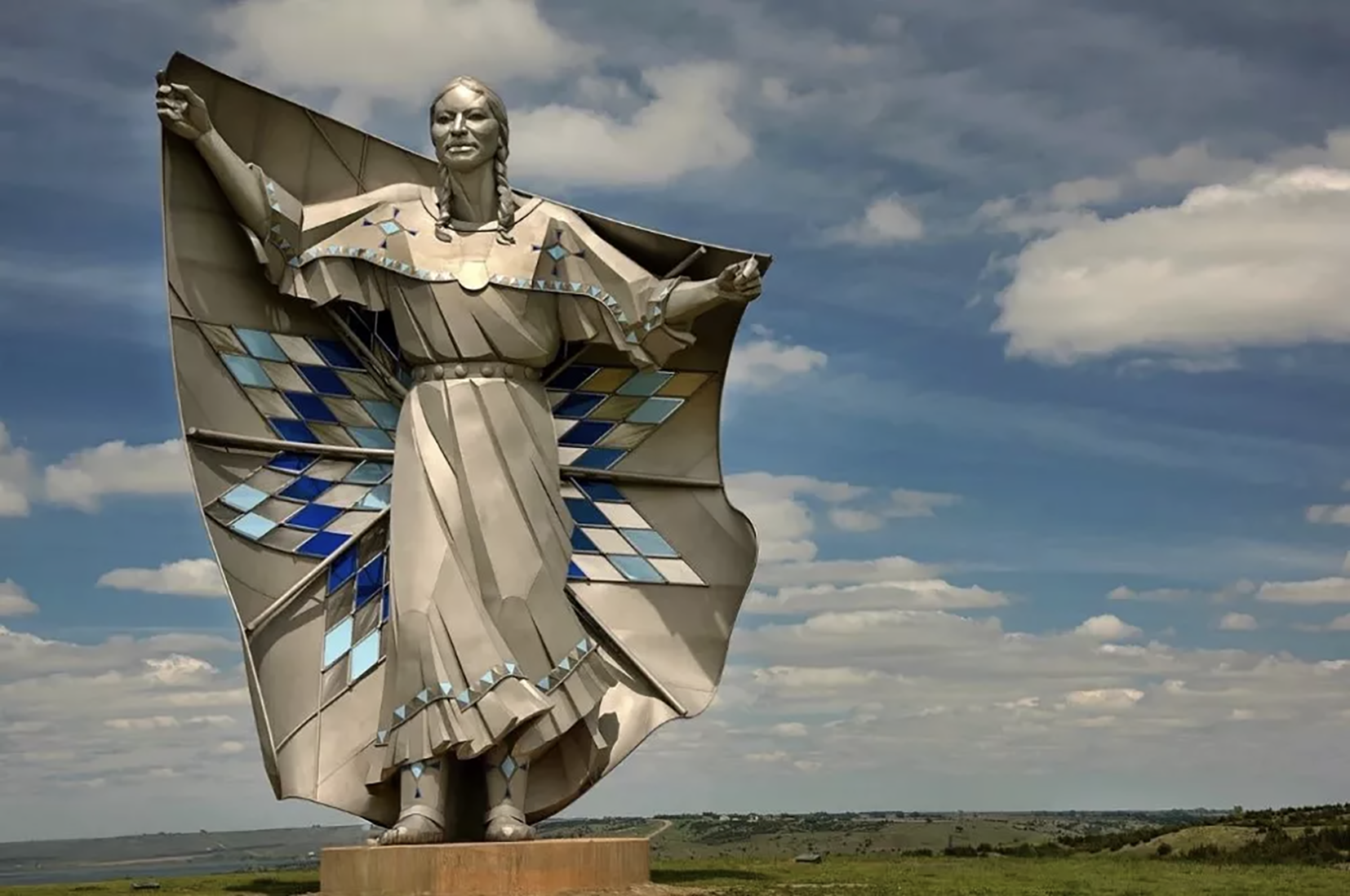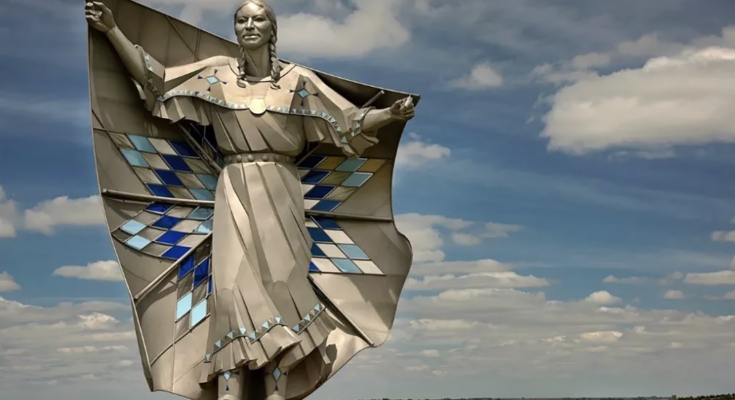 Imagem de capa: Escultura “Dignidade da Terra e do Céu“, com 15 metros de altura do artista Dale Claude Lamphere. É um projeto que, segundo ele, homenageia a comunidade indígena de seu estado natal e demonstra o que pode ser feito com aço inoxidável.
