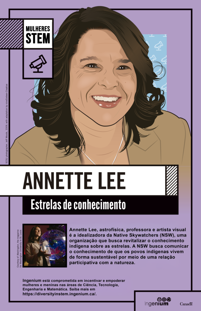 Astrofísica, professora e artista visual, Annette S. Lee também é a designer da Native SkyWatchers (NSW), uma organização que busca revitalizar o conhecimento indígena sobre o céu e as estrelas. A NSW busca comunicar o conhecimento de que os povos indígenas vivem de forma sustentável por meio de uma relação participativa com a natureza.