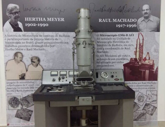 Também me marcou profundamente a presença de mulheres cientistas no Instituto, muitas delas vindas da Europa em razão das guerras e das perseguições políticas. Compartilhávamos não apenas técnicas laboratoriais, mas histórias de deslocamento, resistência e reconstrução intelectual. Em especial, a Profa. Hertha Meyer (1902-1990), uma pioneira na introdução de cultura de células e da microscopia eletrônica no Brasil. Hertha Meyer foi uma das construtoras do Instituto de Biofísica Carlos Chagas Filho (IBCCF).